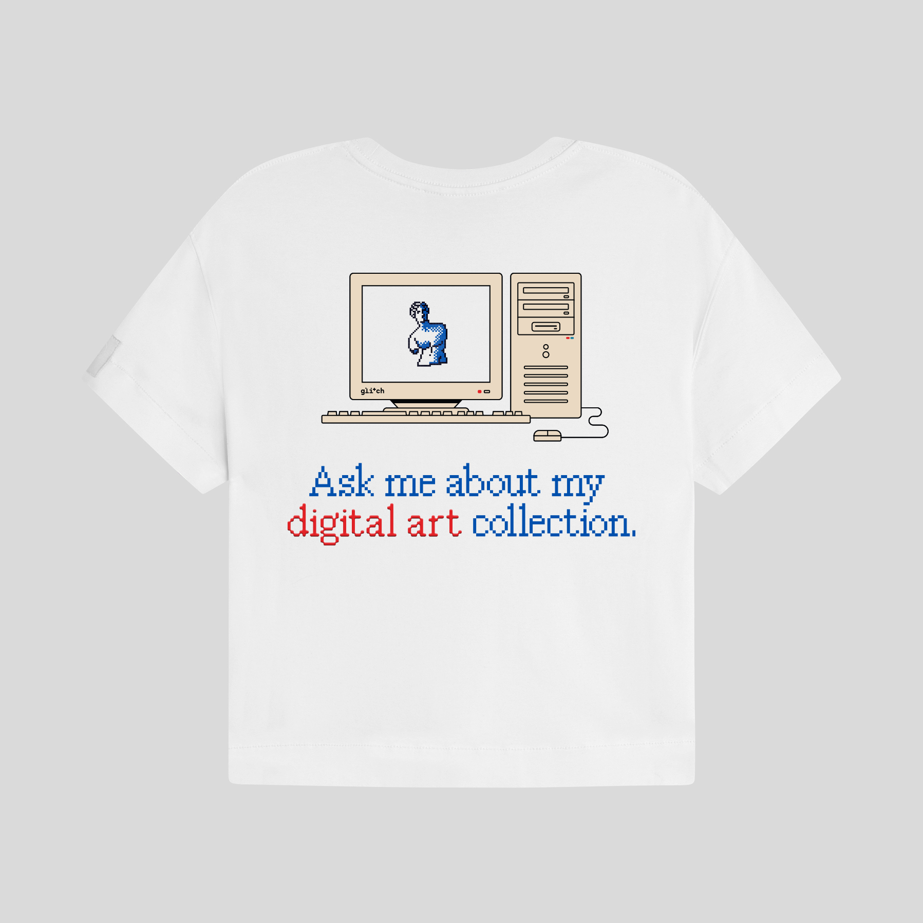 Boxy Cropped Fit with narrow neck opening.